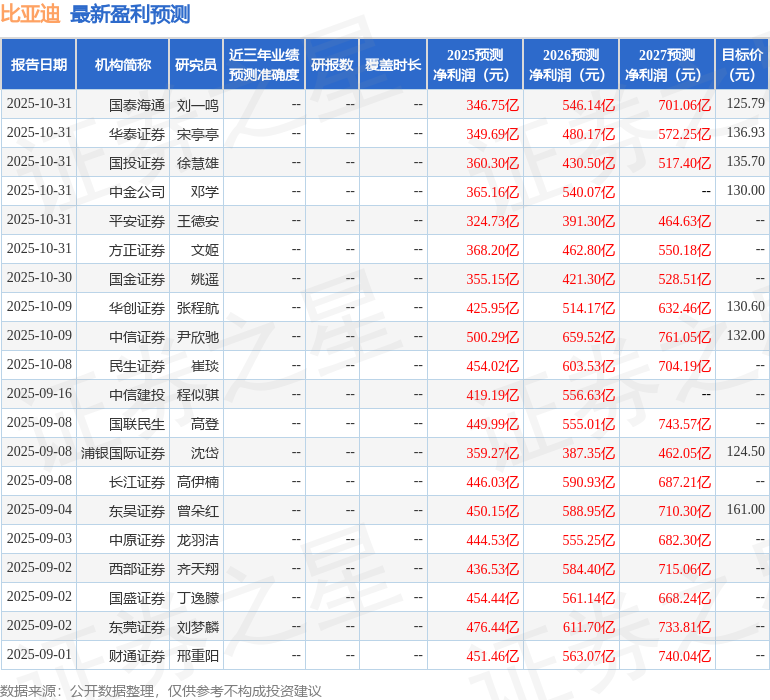 国元证券股份有限公司刘乐,陈烨尧近期对比亚迪进行研究并发布了研究报告《2025年三季度报告点评:前三季度维持销量高增,全球化战略加速》,下调比亚迪目标价至133.21元,给予买入评级。