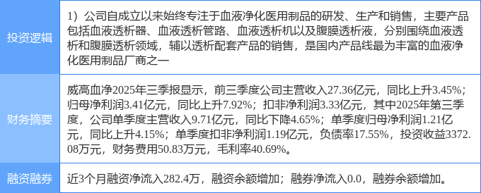 11月4日威高血净涨停:医疗器械概念热股