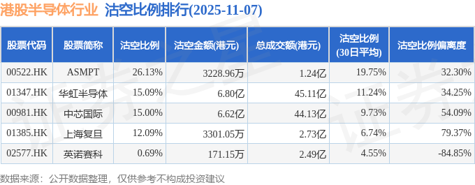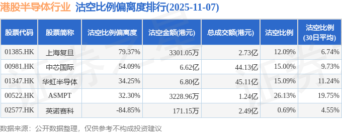 从沽空比例来看,ASMPT、华虹半导体、中芯国际沽空比例位居行业前三,分别为26.13%、15.09%、15%。