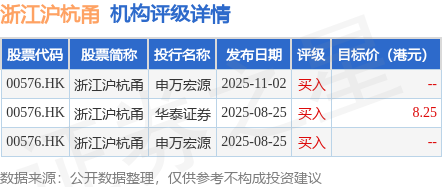 截至2025年11月10日收盘,浙江沪杭甬(00576.HK)报收于7.68港元,上涨1.05%,成交量237.8万股,成交额1822.04万港元。投行对该股的评级以买入为主,近90天内共有3家投行给出买入评级,近90天的目标均价为8.25港元。申万宏源最新一份研报给予浙江沪杭甬买入评级。
