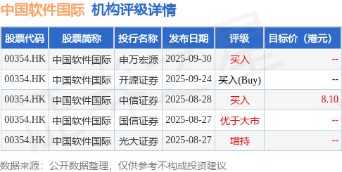 截至2025年11月10日收盘,中国软件国际(00354.HK)报收于5.74港元,上涨1.41%,成交量1334.46万股,成交额7608.73万港元。投行对该股的评级以买入为主,近90天内共有2家投行给出买入评级,近90天的目标均价为8.1港元。申万宏源最新一份研报给予中国软件国际买入评级。