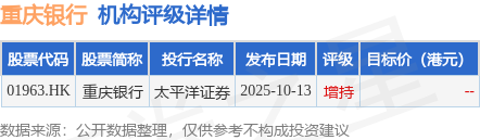 截至2025年11月14日收盘,重庆银行(01963.HK)报收于8.56港元,下跌0.93%,成交量93.95万股,成交额810.11万港元。投行对该股的评级以增持为主,近90天内共有1家投行给出增持评级。太平洋证券最新一份研报给予重庆银行增持评级。