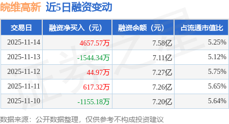 证券之星消息,11月14日,皖维高新(600063)融资买入1.38亿元,融资偿还9095.97万元,融资净买入4657.57万元,融资余额7.58亿元。