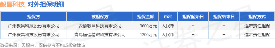 毅昌科技11月14日披露2笔对外担保,被担保公司2家。对外担保明细如下表: