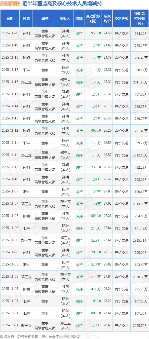 殷图网联近半年内的董监高及核心技术人员增减持详情如下: