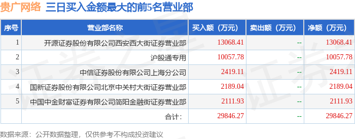 证券小知识:龙虎榜是交易所披露的竞价交易公开信息,现身龙虎榜的个股都是当日最为活跃的个股,是投资者日常重点关注的数据。交易所公布当日买入金额和卖出金额前五名的席位,其中一些席位代表特殊意义,如机构专用席位是指基金专用席位、券商自营专用席位、社保专用席位、券商理财专用席位、保险机构专用席位、保险机构租用席位、QFII专用席位等机构投资者买卖证券的专用通道和席位。深股通专用、沪股通专用为北向资金的交易席位。从龙虎榜数据可以发现和研究机构、游资和散户的资金动向。一些营业部席位经常上榜,市场知名度较高,投资者整理代表散户、游资、量化等不同资金的营业部席位。
