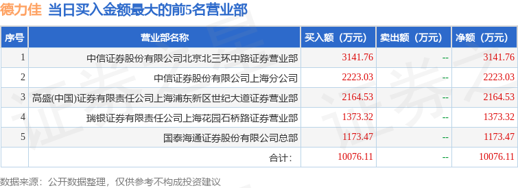 证券之星消息,沪深交易所2025年11月21日公布的交易公开信息显示,德力佳(603092)因有价格涨跌幅限制的日换手率达到20%的前五只证券登上龙虎榜。此次是近5个交易日内第3次上榜。