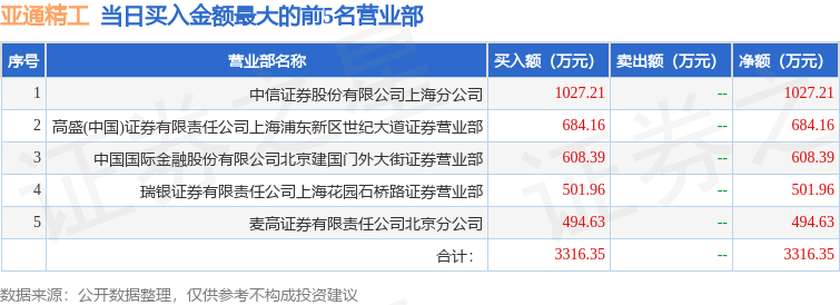 证券之星消息,沪深交易所2025年11月21日公布的交易公开信息显示,亚通精工(603190)因有价格涨跌幅限制的日换手率达到20%的前五只证券登上龙虎榜。此次是近5个交易日内第1次上榜。
