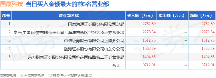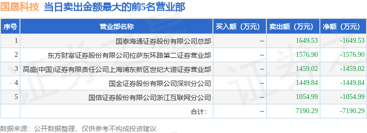 证券之星消息,沪深交易所2025年11月21日公布的交易公开信息显示,国晟科技(603778)因有价格涨跌幅限制的日换手率达到20%的前五只证券登上龙虎榜。此次是近5个交易日内第4次上榜。