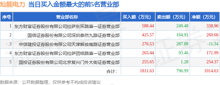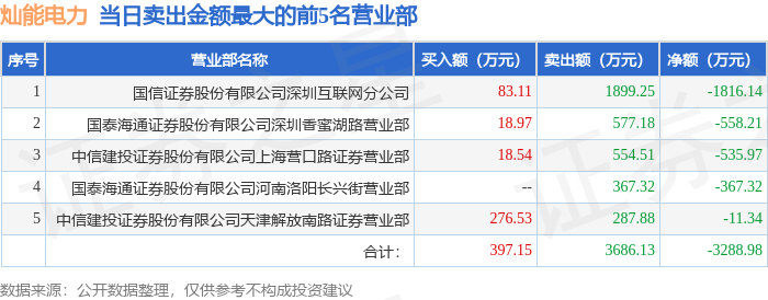 证券之星消息,沪深交易所2025年11月21日公布的交易公开信息显示,灿能电力(920299)因当日换手率达到20%的前5只股票登上龙虎榜。此次是近5个交易日内第1次上榜。