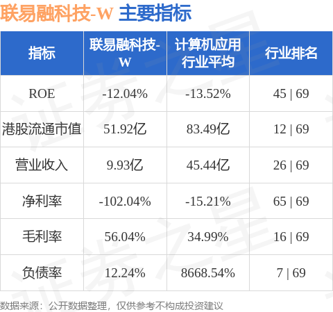 联易融科技-W港股市值51.92亿港元,在计算机应用行业中排名第12。主要指标见下表:
