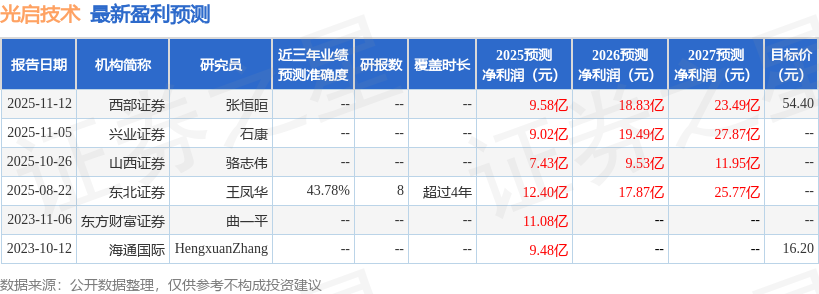 以下是详细的盈利预测信息: