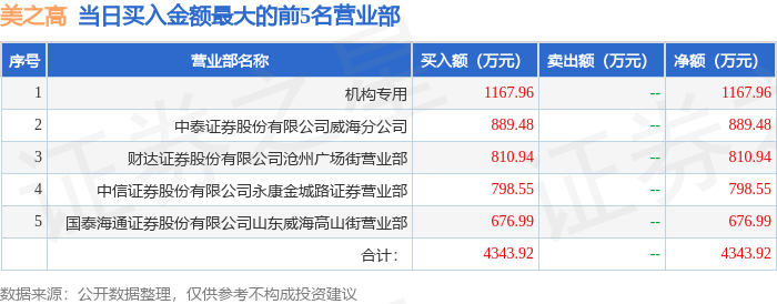 从龙虎榜公布的当日买卖数据来看,机构合计净买入1167.96万元。