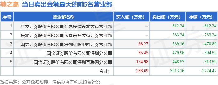 证券之星消息,沪深交易所2025年12月16日公布的交易公开信息显示,美之高(920765)因当日收盘价涨幅达到20%的前5只股票,北交所股票最近3个有成交的交易日以内收盘价涨跌幅偏离值累计达到+40%(-40%)登上龙虎榜。此次是近5个交易日内第1次上榜。
