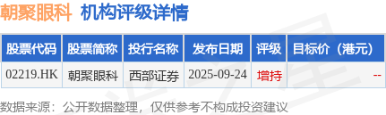 截至2025年12月16日收盘,朝聚眼科(02219.HK)报收于2.65港元,上涨0.76%,成交量36.05万股,成交额93.99万港元。投行对该股的评级以增持为主,近90天内共有1家投行给出增持评级。西部证券最新一份研报给予朝聚眼科增持评级。