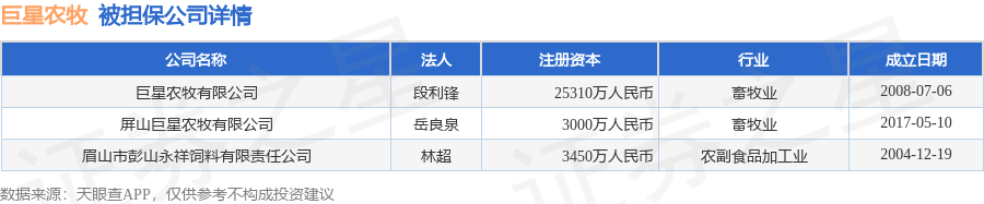 巨星农牧12月15日披露3笔对外担保,被担保公司3家。对外担保明细如下表: