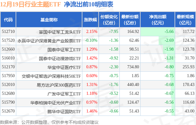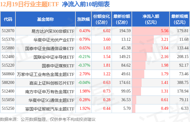 【ETF观察】12月19日行业主题ETF净流入1.67亿元