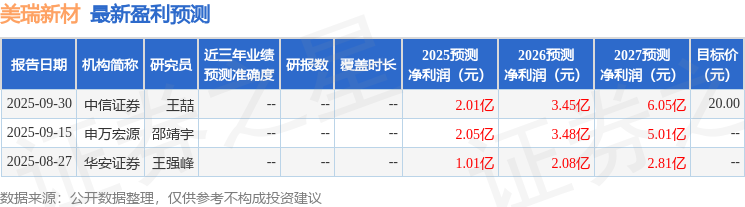 证券之星消息,2025年12月22日美瑞新材(300848)发布公告称中信证券田显城 刘同心、上海聂丰私募刘威、山东嘉信李献刚、盈怀基金吴亮、福泽源私募吴金勇于2025年12月22日调研我司。