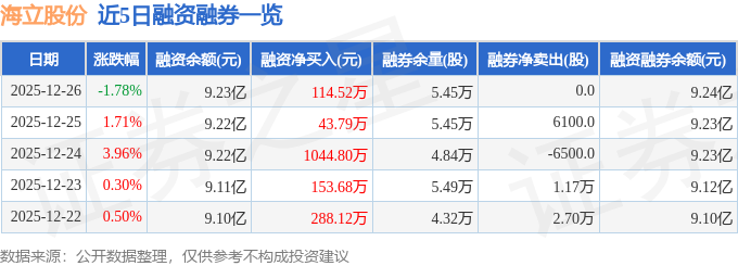 海立股份融资融券信息显示,融资方面,当日融资买入5858.09万元,融资偿还5743.57万元,融资净买入114.52万元,连续3日净买入累计1203.11万元。融券方面,融券卖出0.0股,融券偿还0.0股,融券余量5.45万股,融券余额114.45万元。融资融券余额9.24亿元。