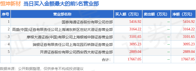 证券小知识:龙虎榜是交易所披露的竞价交易公开信息,现身龙虎榜的个股都是当日最为活跃的个股,是投资者日常重点关注的数据。交易所公布当日买入金额和卖出金额前五名的席位,其中一些席位代表特殊意义,如机构专用席位是指基金专用席位、券商自营专用席位、社保专用席位、券商理财专用席位、保险机构专用席位、保险机构租用席位、QFII专用席位等机构投资者买卖证券的专用通道和席位。深股通专用、沪股通专用为北向资金的交易席位。从龙虎榜数据可以发现和研究机构、游资和散户的资金动向。一些营业部席位经常上榜,市场知名度较高,投资者整理代表散户、游资、量化等不同资金的营业部席位。