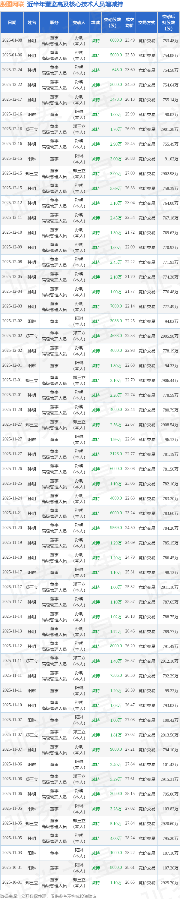 殷图网联近半年内的董监高及核心技术人员增减持详情如下: