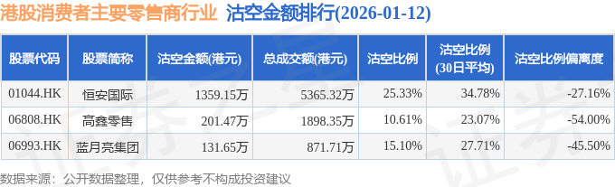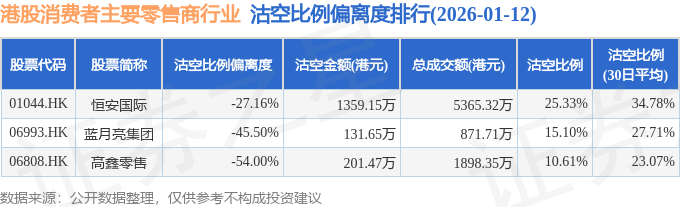 由于港股人民币柜台交易股票成交金额较小,沽空比例普遍偏高,为了避免干扰,已将人民币柜台交易股票从排行表格中剔除。