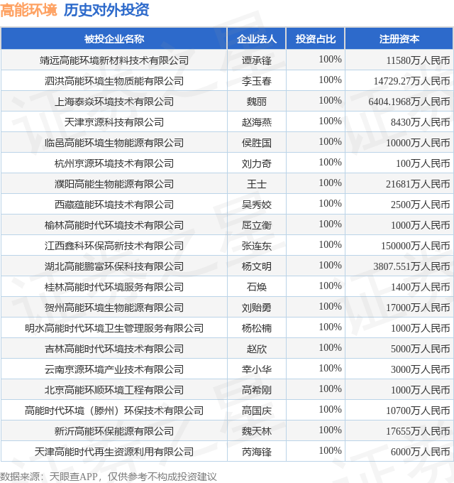 证券之星消息,根据天眼查APP显示,高能环境(603588.SH)新增一起对外投资事件,被投资公司为怀化岳坪矿业有限责任公司,法定代表人陈培柯,投资占比为45.2%。该公司从事批发业,注册资本为100万人民币。目前,高能环境共存在对外投资84项,投资占比前20的项目见下表: