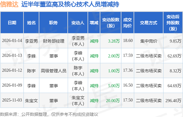 信雅达近半年内的董监高及核心技术人员增减持详情如下: