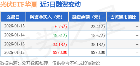 证券之星消息,1月15日,光伏ETF华夏(515370)融资买入118.06万元,融资偿还111.31万元,融资净买入6.75万元,融资余额22.41万元。