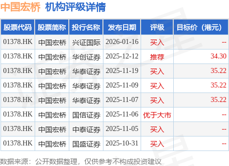 投行对该股的评级以买入为主,近90天内共有6家投行给出买入评级,近90天的目标均价为34.99港元。兴证国际最新一份研报给予中国宏桥买入评级。