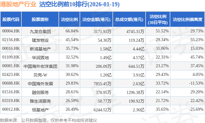 从沽空比例来看,九龙仓集团、建发物业、新鸿基地产沽空比例位居行业前三,分别为66.84%、45.54%、35.73%。