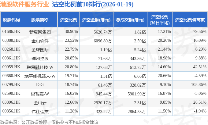从沽空比例来看,新意网集团、金山软件、金蝶国际沽空比例位居行业前三,分别为30.9%、23.52%、22.79%。