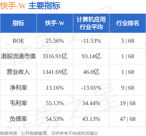 快手-W港股市值3316.91亿港元,在计算机应用行业中排名第1。主要指标见下表: