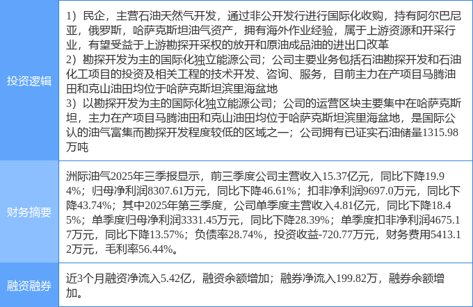 证券之星消息,洲际油气1月22日涨停收盘,收盘价4.25元。该股于9点34分涨停,10次打开涨停,截止收盘封单资金为7307.42万元,占其流通市值0.41%。