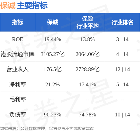 保诚港股市值3105.27亿港元,在保险行业中排名第4。主要指标见下表: