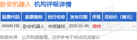 投行对该股的评级以增持为主,近90天内共有1家投行给出增持评级。中信建投最新一份研报给予卧安机器人增持评级。