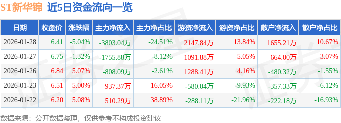 1月28日的资金流向数据方面,主力资金净流出3803.04万元,占总成交额24.51%,游资资金净流入2147.84万元,占总成交额13.84%,散户资金净流入1655.21万元,占总成交额10.67%。