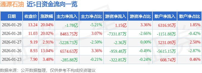 证券之星消息,通源石油1月29日涨停收盘,收盘价13.24元。该股于13点8分涨停,5次打开涨停,截止收盘封单资金为4913.5万元,占其流通市值0.64%。