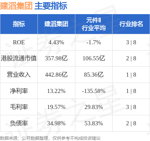 建滔集团港股市值357.98亿港元,在元件Ⅱ行业中排名第2。主要指标见下表: