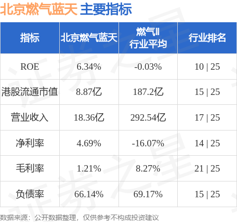 北京燃气蓝天港股市值8.87亿港元,在燃气Ⅱ行业中排名第15。主要指标见下表: