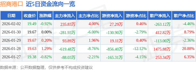 证券之星消息,截至2026年2月2日收盘,招商港口(001872)报收于19.49元,下跌0.92%,换手率0.13%,成交量3.0万手,成交额5893.49万元。