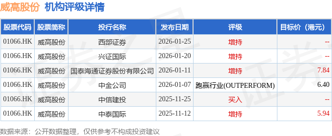 截至2026年2月3日收盘,威高股份(01066.HK)报收于5.09港元,上涨1.19%,成交量1542.04万股,成交额7802.41万港元。投行对该股的评级以增持为主,近90天内共有4家投行给出增持评级,近90天的目标均价为6.73港元。西部证券最新一份研报给予威高股份增持评级。