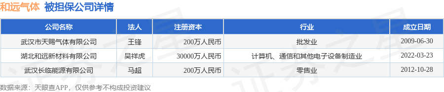 和远气体2月2日披露3笔对外担保,被担保公司3家。对外担保明细如下表: