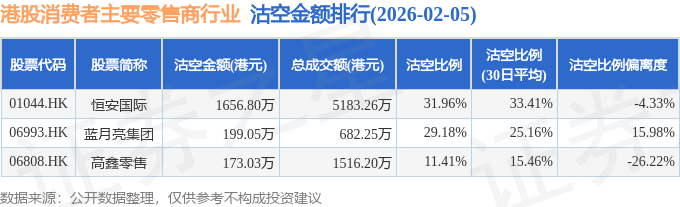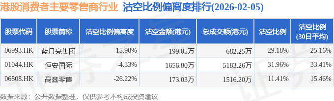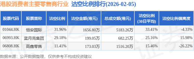 由于港股人民币柜台交易股票成交金额较小,沽空比例普遍偏高,为了避免干扰,已将人民币柜台交易股票从排行表格中剔除。