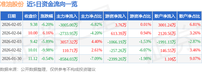 2月5日的资金流向数据方面,主力资金净流出3005.0万元,占总成交额6.82%,游资资金净流入3.76万元,占总成交额0.01%,散户资金净流入3001.24万元,占总成交额6.81%。