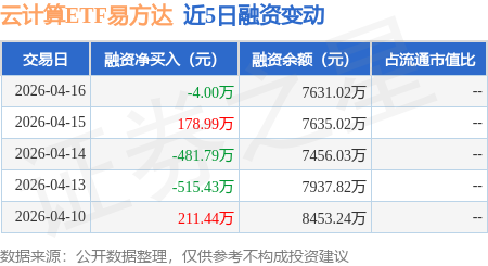 证券之星消息,4月16日,云计算ETF易方达(516510)融资买入1287.66万元,融资偿还1291.66万元,融资净卖出4.0万元,融资余额7631.02万元。