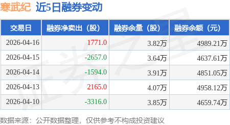 证券之星消息,4月16日,寒武纪(688256)融资买入13.71亿元,融资偿还31.38亿元,融资净卖出17.67亿元,融资余额178.58亿元,近20个交易日中有13个交易日出现融资净买入。