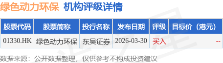 截至2026年4月17日收盘,绿色动力环保(01330.HK)报收于5.73港元,下跌1.88%,成交量98.6万股,成交额570.46万港元。投行对该股的评级以买入为主,近90天内共有1家投行给出买入评级。东吴证券最新一份研报给予绿色动力环保买入评级。