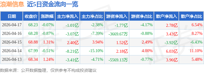 4月17日的资金流向数据方面,主力资金净流出1.01亿元,占总成交额2.38%,游资资金净流出1.77亿元,占总成交额4.17%,散户资金净流入2.78亿元,占总成交额6.54%。