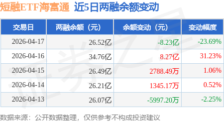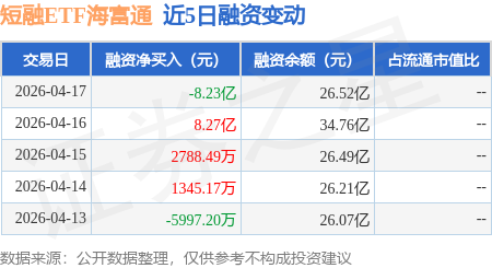 证券之星消息,4月17日,短融ETF海富通(511360)融资买入29.4亿元,融资偿还37.63亿元,融资净卖出8.23亿元,融资余额26.52亿元,近20个交易日中有12个交易日出现融资净买入。